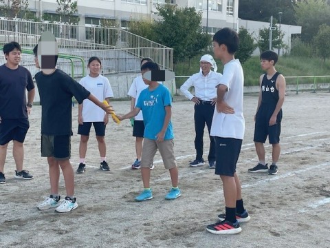 10/14に開催の堺市市民オリンピック。昨日(10/1)、第1回めの小中合同練習会を行いました。原山ひかり小学校グランドに集まったのは100mとリレーに出場するメンバー。小中学生合同チームのリレーでは、陸上部の先生や地域の方の指導、また中学生が小学生に教える場面もあります。地域一丸となって挑む市民オリンピック。 子どもたちの活躍が楽しみです。