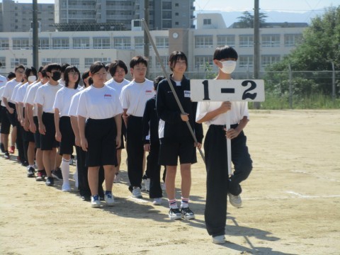 1年生の保健体育授業では、体育大会の動きについての説明が行われています。