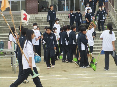 給食後、各学年ごとに小学校に移動し、準備を行いました。