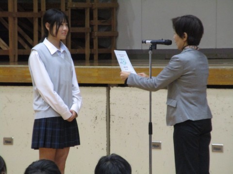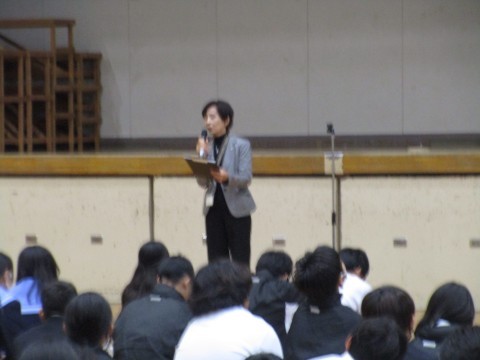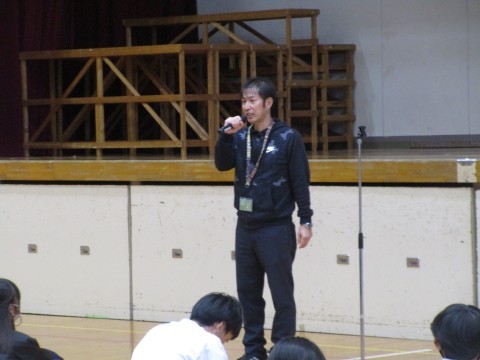 集会では、校長先生からよく頑張った体育大会をこの後の学校生活に活かすこと、生徒指導主事M先生からは、正門の工事や身だしなみについてのお話がありました。