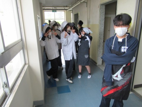 配膳室に入る前に、