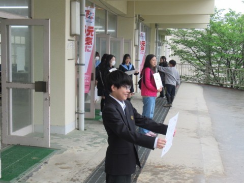 今日は委員会活動として、風紀委員さんが朝のあいさつ活動をしてくれました。