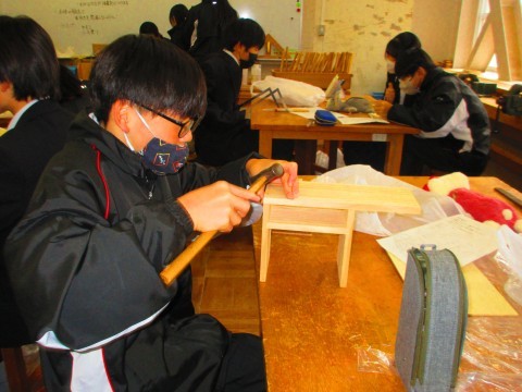 釘を打つ位置や引き出しのつまみの向きを間違えないよう、注意しながら取り組んでいます。