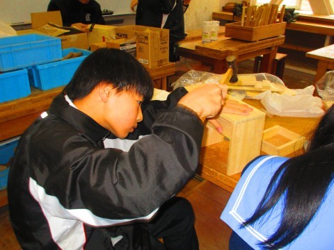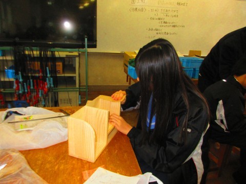 ほとんどの生徒が、引き出しや本体の組み立てを行っています。