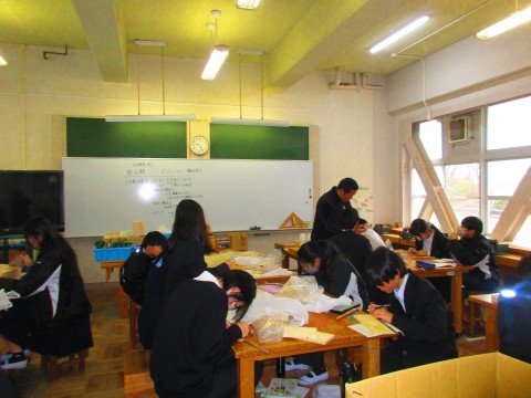 1年2組家庭科授業の様子。