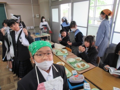 「小学校と比べるとどう?」と聞くと、「量が割と多いです。」「食器が大きいです。」と新入生ならではの感想でした。