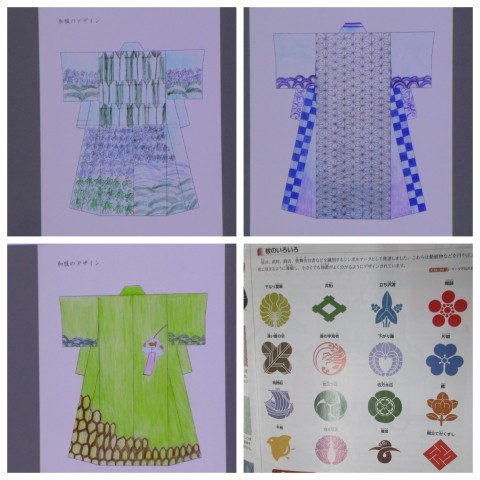 今日の学習は、和の文様や色を知り、和服のデザインを考えること。