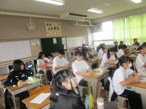2年生道徳授業の様子。