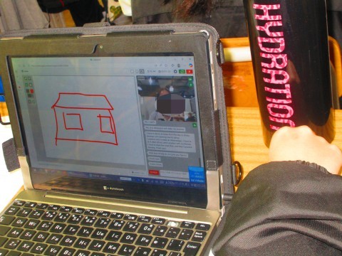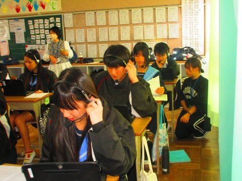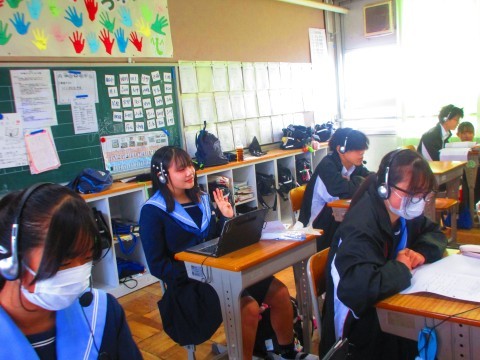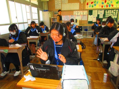 今日の2年2組英語の授業は、海外の人とつながるオンライン英会話の時間です。