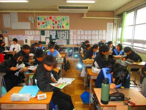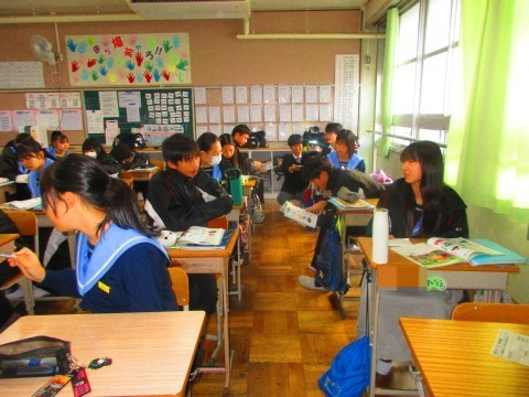 2年2組英語授業では、リスニング力をつける学習を進めています。