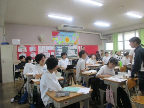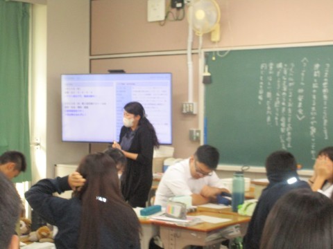 写真は3年生、理科、国語、数学のテスト返却の様子。