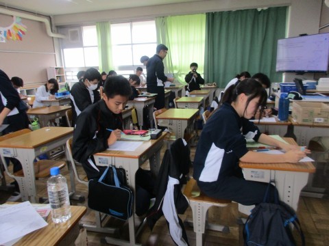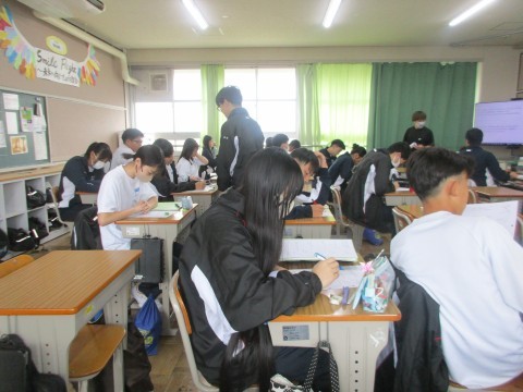 I先生のクラスでは、英作文のミニテスト、H先生のクラスではリスニングを行っています。