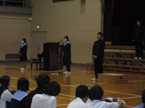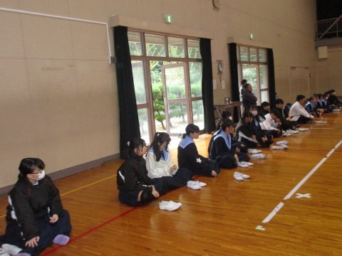 文化活動発表会にむけて、3年生学年リハーサルの様子。