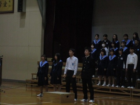 3年生の迫力ある合唱を1年生は食い入るように聞いています。
