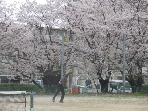 少し風が強くなってきました。コート外の桜の花びらがふわっと舞っていました。