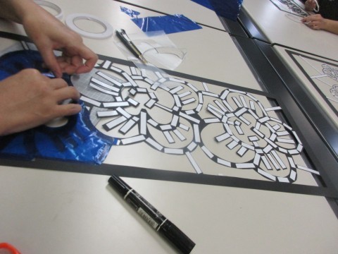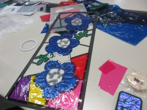 種まきの後は、連日続く「ステンドグラス」の作製。