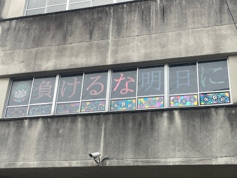 原中恒例、PTAのみなさまによる横断幕づくり。