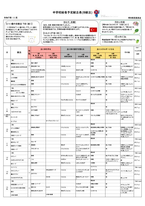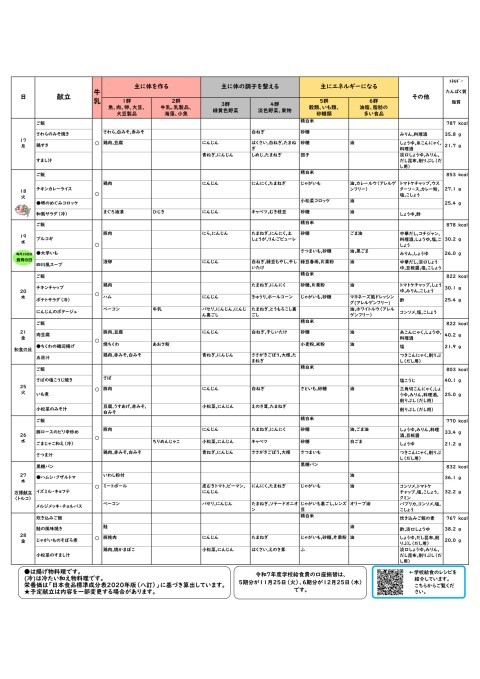 12月の献立表 公開日 2025/11/26 更新日 2025/11/26 今日の給食 12月の給食献立表が発行されました。中学校給食の献立表は、堺市のホームページより閲覧できます。以下のリンクからも閲覧できますのでご覧ください。 12月献立表