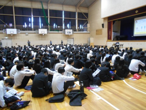 12月16日(火)4限めに南堺警察署の交通安全課の方より「交通安全教室」をしていただきました。