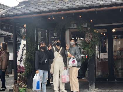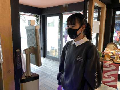 長浜黒壁スクエア自由散策。 各店舗の入り口には検温器があります。