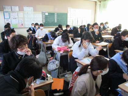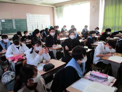 2年生の国語の授業です。メディアについての学習をしています。テレビ,新聞,インターネットなどの情報機関についてまとめています。