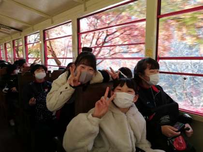 景色を見たり、写真を撮ったりしています。今回の校外学習では、ルールを守った上で、カメラを持ってきています。