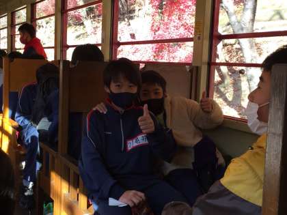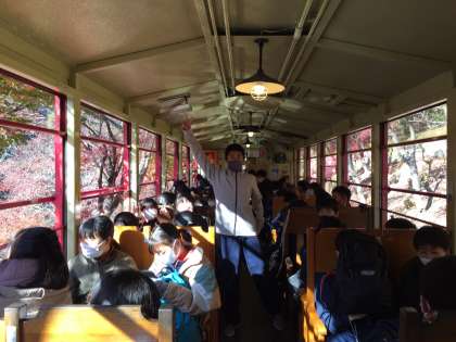 楽しんでトロッコに乗っています。