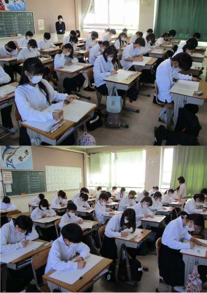 最終日は、英語、数学、美術です。最後まで頑張りましょう。