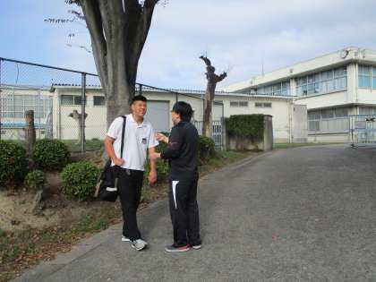 朝のコミュニケーション。 笑顔の登校となっています。