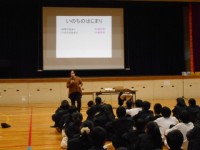 正月3が日の「食」といえば、「おせち」「お雑煮」あたりを、子どもたちもイメージしていたようです。栄養教諭から、その「おせち」「お雑煮」「煮しめ」の3つの料理について、「なぜ正月に食べられるのか」の謎が解ける話に、子どもたちは思わず「へ〜」となり、聞き入っていました。
