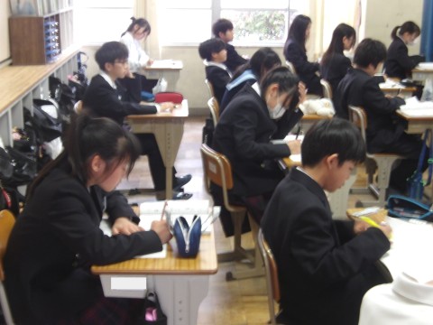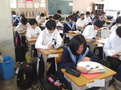 1年間の振り返りをした後は,クラスメートのいいところを探して,卒業メッセージを書...