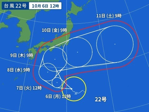 台風22号が日本列島に接近する見込みです。現在の予報円の北側を通った場合、近畿地方に影響を及ぼす可能性があります。