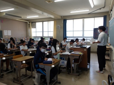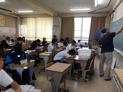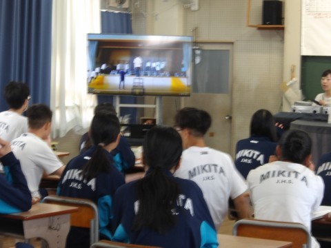 音楽の授業では、過去の合唱コンクールの映像を見て、本番の流れを確認しています。