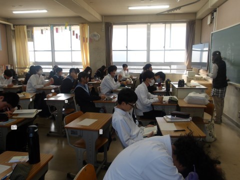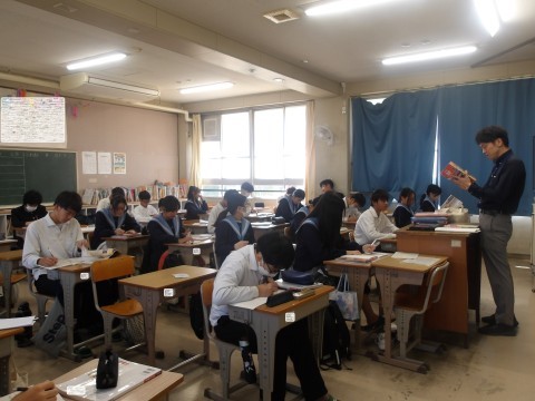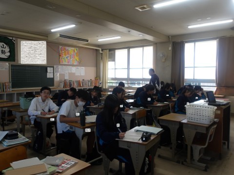 昨日に引き続き音楽の授業では合唱曲の歌唱テストを行っています。