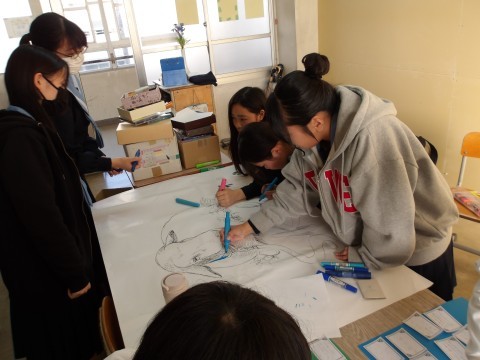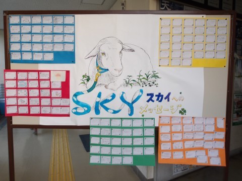 学級委員会では,サンとスカイについて考えた時に書いた,スカイへのメッセージボードを作成しました。