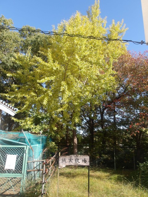 誠実牧場前のイチョウも薄い緑になってきて、こちらも黄葉が進んでいます。