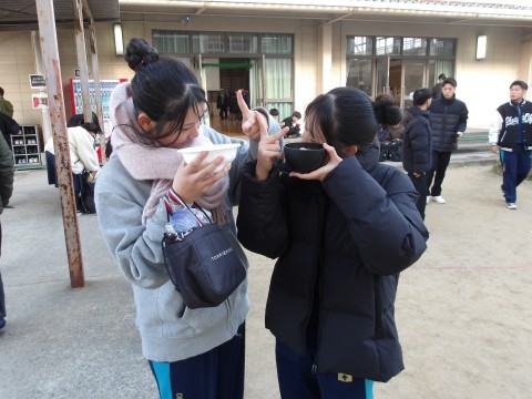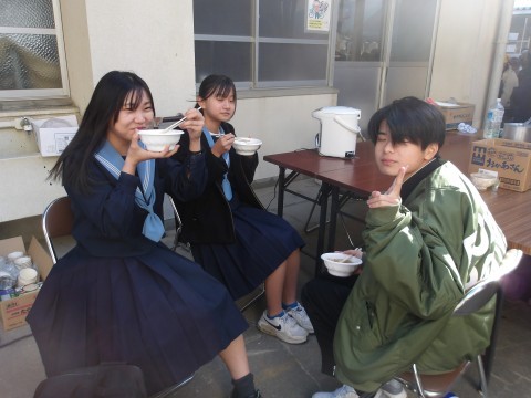全校生徒そして小学生も含めて1000食以上の炊き出し,本当においしくいただくことができました。