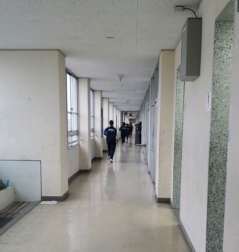 冬休みにもかかわらず練習に励んでいます。ソフトテニス部は、あいにくの天候のため校舎内でトレーニングです。