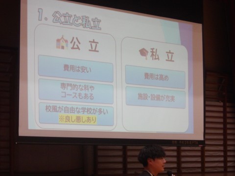 本校進路指導主事の先生から、公立高校と私立高校の違いや、これからの一年間の過ごし方などのお話がありました。