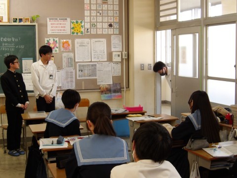 また,代表による模擬練習も実施し,礼儀や話し方について学びました。