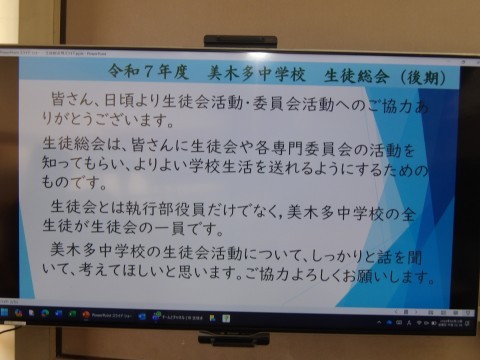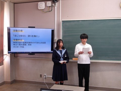 生徒会執行部、各専門委員会から後期の活動の振り返りや成果、次年度に向けて引き継ぎたいことなどのプレゼンテーションがありました。