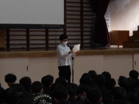 その後,在校生からのビデオメッセージを見て,在校生からの送る言葉,卒業生からのお礼の言葉がありました。