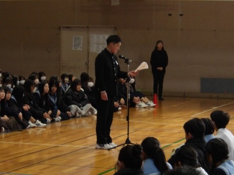 まずは,三年生 最後の表彰伝達がありました。