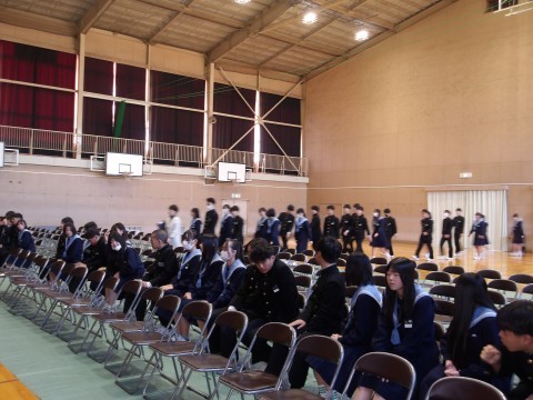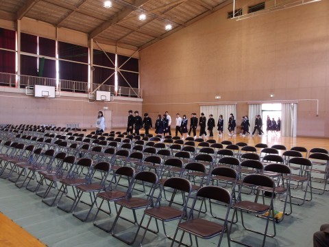 明日の本番を控えて、本日卒業式の予行を行いました。