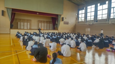 学年集会 公開日 2026/04/09 更新日 2026/04/09 1年 今日の2時間目 学年集会を行いました。学年団の教師が一人ずつ自己紹介や今年の目標、生徒のみんなに伝えたいメッセージを発表しました。顔を上げ、しっかり話を聞く態度で過ごせていました。1年間、今の気持ちを忘れず、有意義な時間としましょう。