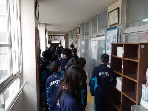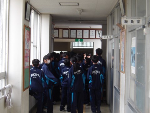 3限めには校舎めぐりをしました。職員室の入室の仕方では代表者の生徒が元気よく入室してくれました。緊張したと思いますが,みんなのためにありがとうございます!