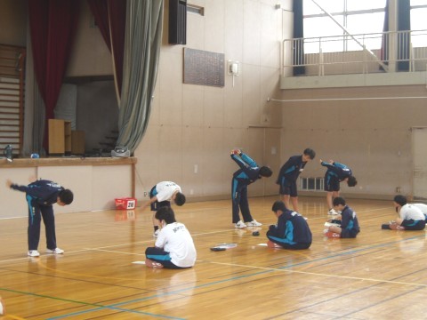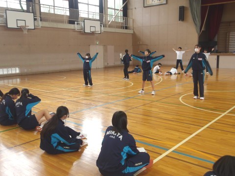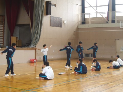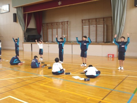 2年生の保健体育の授業では、ラジオ体操の練習が行われています。