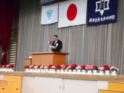 国歌斉唱・校歌紹介のあと、学校長の式辞がありました。