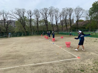 4面あるコートのうち、今日は2面使ってサーブレシーブの練習をしています。