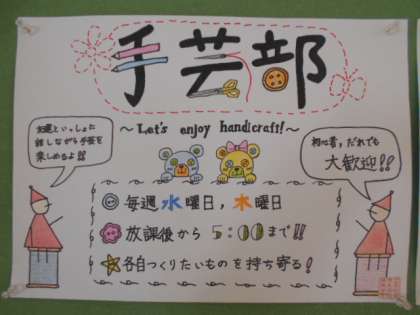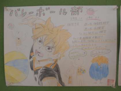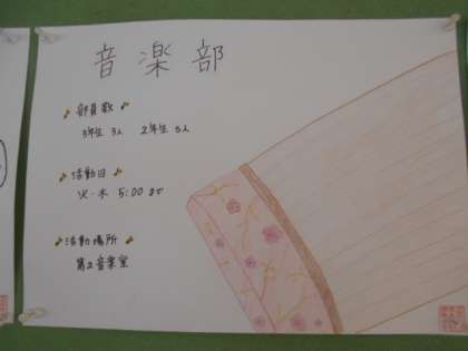 生徒昇降口や1年生のフロアには、各クラブで作成した新入部員募集ポスターが掲示されています。